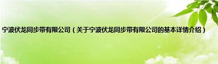 本文关于宁波伏龙同步带有限公司的基本详情介绍就讲解完毕,希望对大家有所帮助。