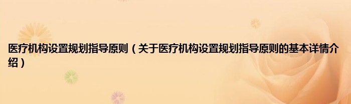医疗机构设置规划指导原则(关于医疗机构设置规划指导原则的基本详情介绍)