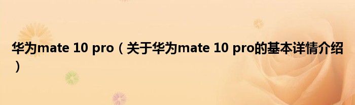 本文关于华为mate 10 pro的基本详情介绍就讲解完毕,希望对大家有所帮助。
