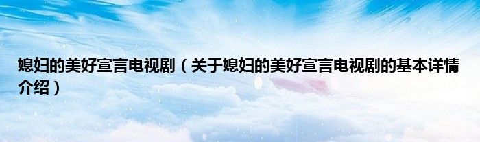本文关于媳妇的美好宣言电视剧的基本详情介绍就讲解完毕,希望对大家有所帮助。