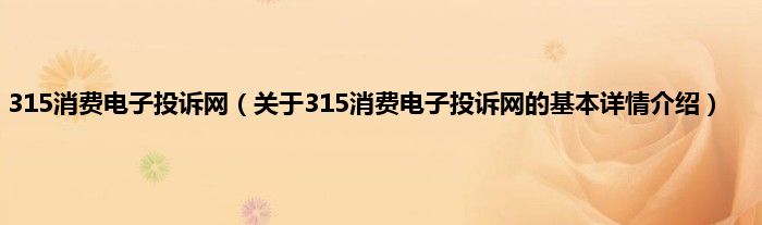 本文关于315消费电子投诉网的基本详情介绍就讲解完毕,希望对大家有所帮助。
