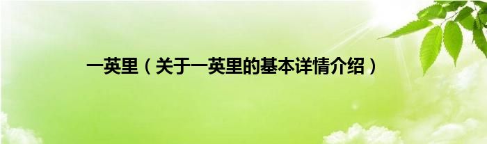 本文关于一英里的基本详情介绍就讲解完毕,希望对大家有所帮助。