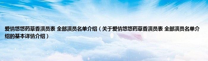 本文关于爱情悠悠药草香演员表 全部演员名单介绍的基本详情介绍就讲解完毕,希望对大家有所帮助。