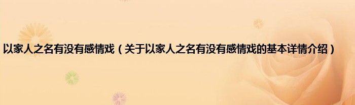 本文关于以家人之名有没有感情戏的基本详情介绍就讲解完毕,希望对大家有所帮助。