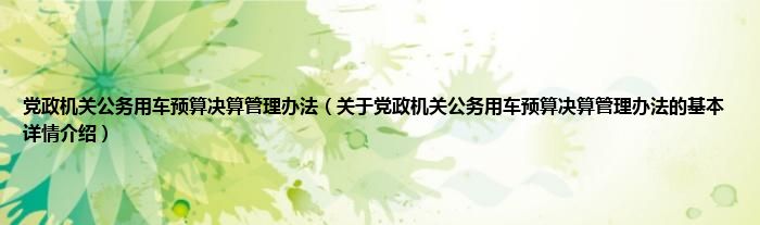 本文关于党政机关公务用车预算决算管理办法的基本详情介绍就讲解完毕,希望对大家有所帮助。