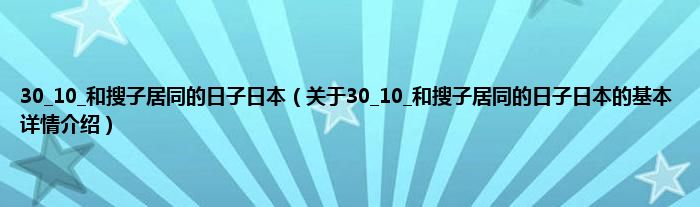 本文关于30_10_和搜子居同的日子日本的基本详情介绍就讲解完毕,希望对大家有所帮助。