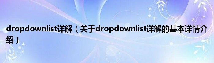 本文关于dropdownlist详解的基本详情介绍就讲解完毕,希望对大家有所帮助。