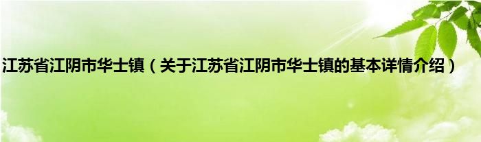 本文关于江苏省江阴市华士镇的基本详情介绍就讲解完毕,希望对大家有所帮助。