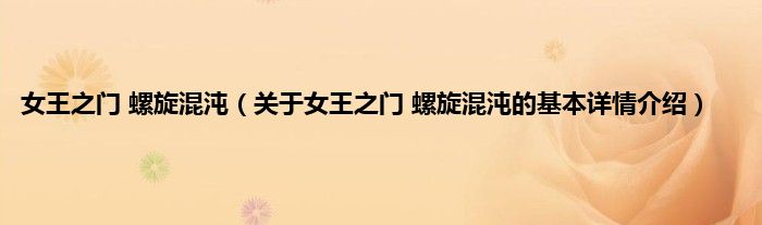 本文关于女王之门 螺旋混沌的基本详情介绍就讲解完毕,希望对大家有所帮助。