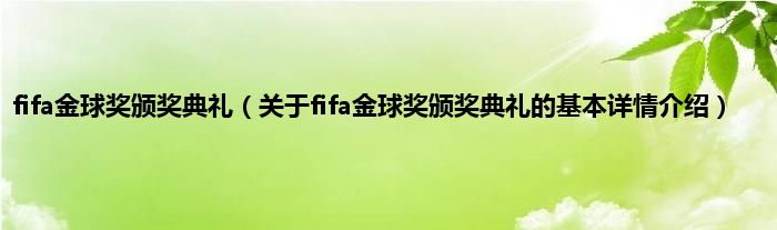 本文关于fifa金球奖颁奖典礼的基本详情介绍就讲解完毕,希望对大家有所帮助。