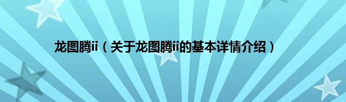 本文关于龙图腾ii的基本详情介绍就讲解完毕,希望对大家有所帮助。