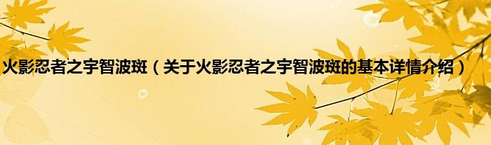 本文关于火影忍者之宇智波斑的基本详情介绍就讲解完毕,希望对大家有所帮助。