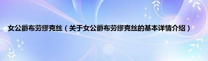 女公爵布劳缪克丝(关于女公爵布劳缪克丝的基本详情介绍)