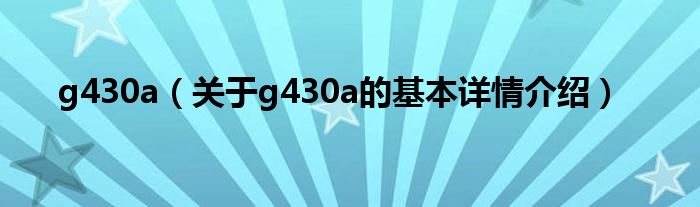 本文关于g430a的基本详情介绍就讲解完毕,希望对大家有所帮助。