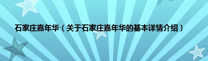 本文关于石家庄嘉年华的基本详情介绍就讲解完毕,希望对大家有所帮助。