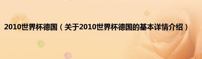 本文关于2010世界杯德国的基本详情介绍就讲解完毕,希望对大家有所帮助。