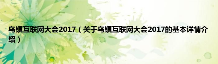 本文关于乌镇互联网大会2017的基本详情介绍就讲解完毕,希望对大家有所帮助。