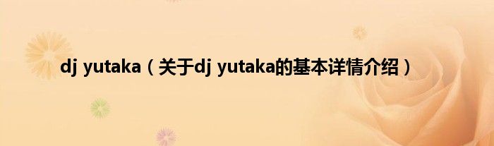 本文关于dj yutaka的基本详情介绍就讲解完毕,希望对大家有所帮助。