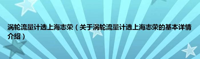 本文关于涡轮流量计选上海志荣的基本详情介绍就讲解完毕,希望对大家有所帮助。