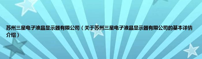 本文关于苏州三星电子液晶显示器有限公司的基本详情介绍就讲解完毕,希望对大家有所帮助。