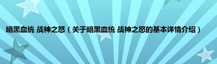 本文关于暗黑血统 战神之怒的基本详情介绍就讲解完毕,希望对大家有所帮助。