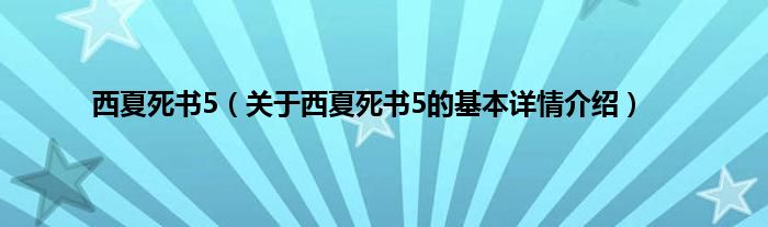 本文关于西夏死书5的基本详情介绍就讲解完毕,希望对大家有所帮助。