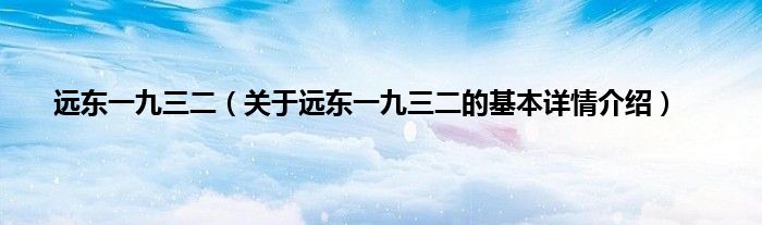 本文关于远东一九三二的基本详情介绍就讲解完毕,希望对大家有所帮助。