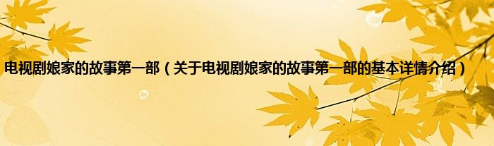 本文关于电视剧娘家的故事第一部的基本详情介绍就讲解完毕,希望对大家有所帮助。