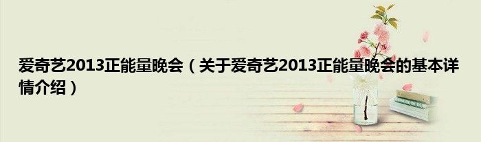 本文关于爱奇艺2013正能量晚会的基本详情介绍就讲解完毕,希望对大家有所帮助。