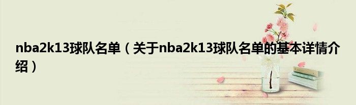 本文关于nba2k13球队名单的基本详情介绍就讲解完毕,希望对大家有所帮助。