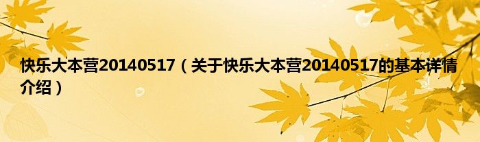 本文关于快乐大本营20140517的基本详情介绍就讲解完毕,希望对大家有所帮助。