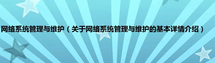 本文关于网络系统管理与维护的基本详情介绍就讲解完毕,希望对大家有所帮助。
