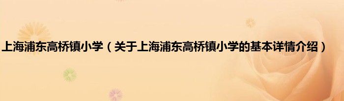 本文关于上海浦东高桥镇小学的基本详情介绍就讲解完毕,希望对大家有所帮助。