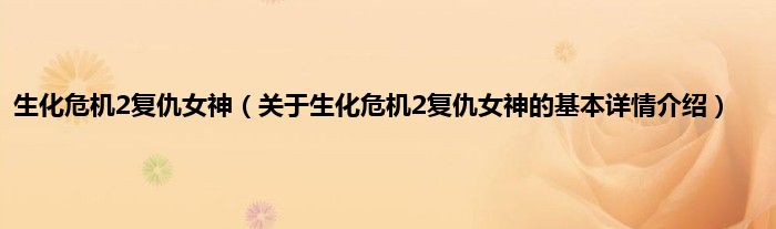 本文关于生化危机2复仇女神的基本详情介绍就讲解完毕,希望对大家有所帮助。