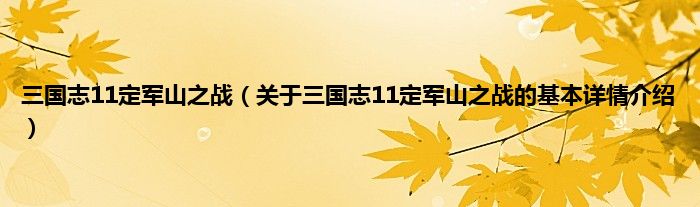 本文关于三国志11定军山之战的基本详情介绍就讲解完毕,希望对大家有所帮助。