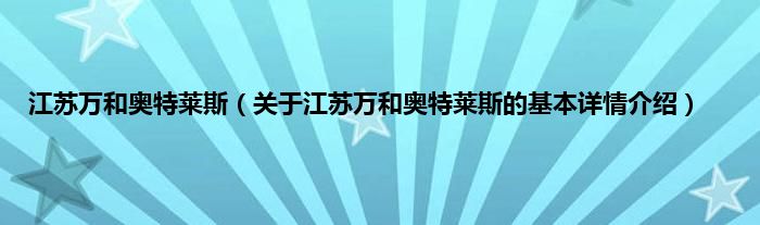 本文关于江苏万和奥特莱斯的基本详情介绍就讲解完毕,希望对大家有所帮助。
