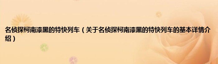 本文关于名侦探柯南漆黑的特快列车的基本详情介绍就讲解完毕,希望对大家有所帮助。