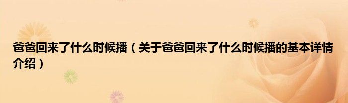 本文关于爸爸回来了什么时候播的基本详情介绍就讲解完毕,希望对大家有所帮助。