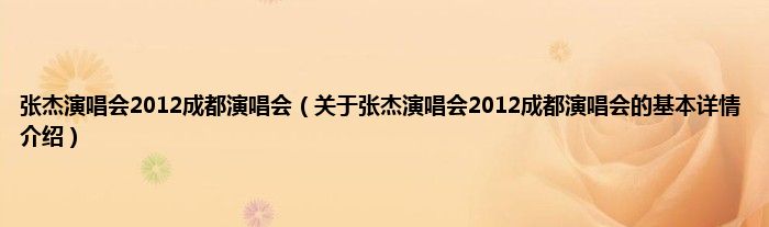 本文关于张杰演唱会2012成都演唱会的基本详情介绍就讲解完毕,希望对大家有所帮助。