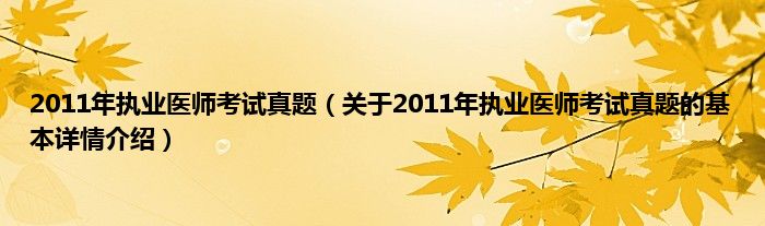 本文关于2011年执业医师考试真题的基本详情介绍就讲解完毕,希望对大家有所帮助。