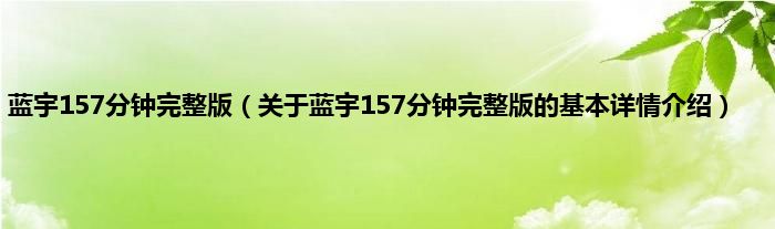 本文关于蓝宇157分钟完整版的基本详情介绍就讲解完毕,希望对大家有所帮助。