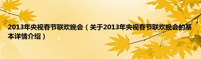 本文关于2013年央视春节联欢晚会的基本详情介绍就讲解完毕,希望对大家有所帮助。