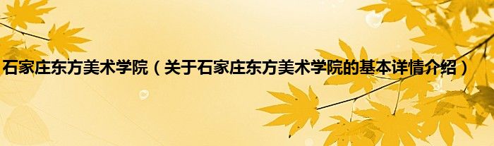 本文关于石家庄东方美术学院的基本详情介绍就讲解完毕,希望对大家有所帮助。