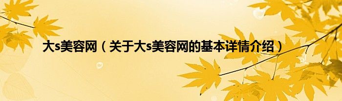 本文关于大s美容网的基本详情介绍就讲解完毕,希望对大家有所帮助。