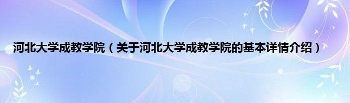 河北大学成教学院(关于河北大学成教学院的基本详情介绍)