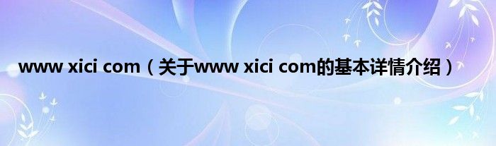 本文关于www xici com的基本详情介绍就讲解完毕,希望对大家有所帮助。