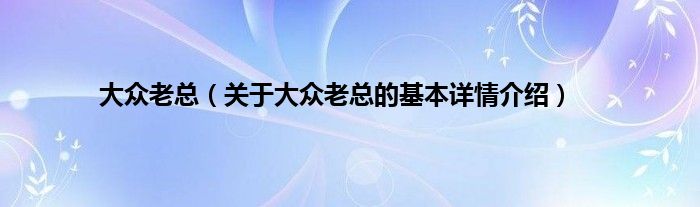 大家好我是小蝌蚪,大众老总,关于大众老总的基本详情介绍很多人还不知道,那么现在让我们一起来看看吧!