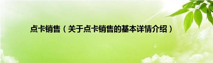 本文关于点卡销售的基本详情介绍就讲解完毕,希望对大家有所帮助。