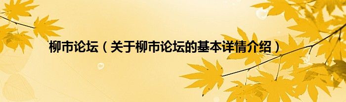 本文关于柳市论坛的基本详情介绍就讲解完毕,希望对大家有所帮助。