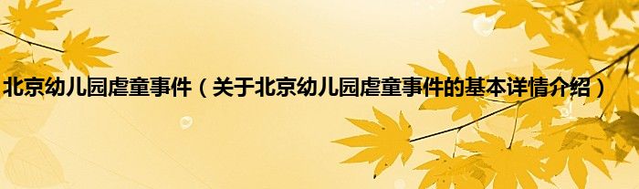 本文关于北京幼儿园虐童事件的基本详情介绍就讲解完毕,希望对大家有所帮助。